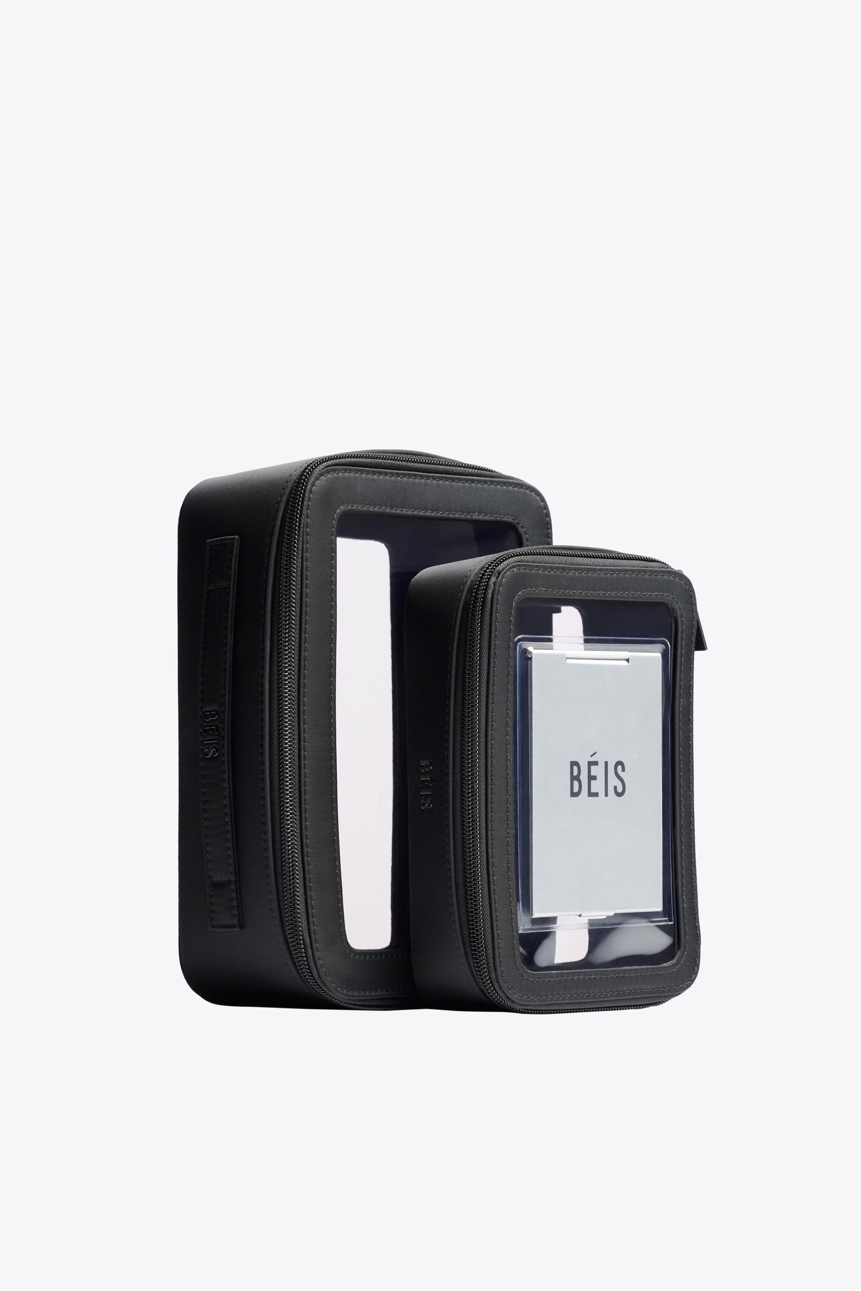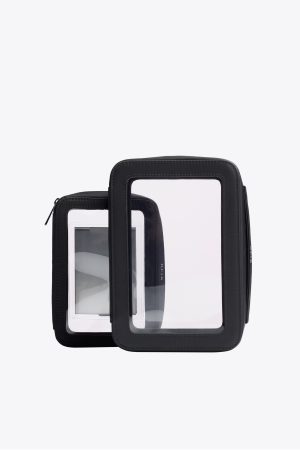 It’s clear (literally): this perfect TSA approved toiletry bag is the missing piece in your luggage collection. Made to nest within each other for easy storage. this cosmetic travel bag was designed for when your plans are a little up in the air — you never know when you’ll need a removable standing mirror for an in-flight touch up. It’s the perfect size for all of your bottles and business. plus the inner lining is coated for real clean beauty. Your fear of turbulence is valid. but don’t be afraid to shake up your travel organization routine.
