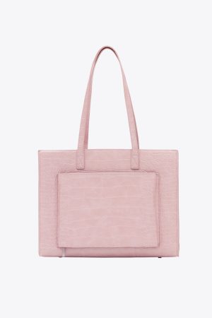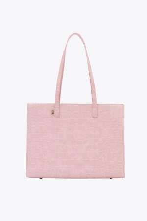 Introducing the Work Tote in Atlas Pink Croc! Make life easier with our convenient work tote bag. designed to simplify your daily routine. With its magnetic closures and sturdier trolley pass-through. this work bag makes it easy to navigate crowded areas or public transportation without straining your back or shoulders. Whether you’re heading to the office or a meeting. this laptop tote bag is the perfect companion.